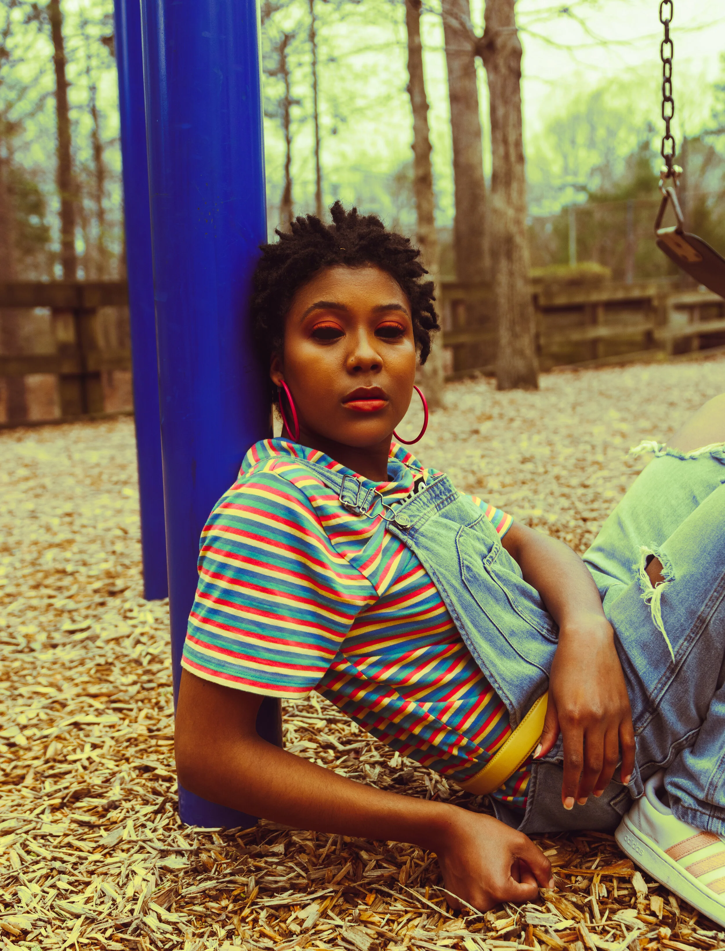 This shoot did not take days or weeks of planning. I was filming bts for a very talented friend Deja Proctor for her editorial-style photoshoot. After it was all done we grabbed some delicious pizza from Nancy’s Pizzeria and parted ways. It was such a wonderful day, and I didn’t want to end it there. I felt inspired and I really wanted to do a self-portrait. My outfit was very kidlike to me, with the colors, the overalls, and especially the yellow belt which is one of my favorite colors. I knew it had to be done at a park, and on a swing. Swings are the first thing I got to at a park, I’ve always loved them. My grandad would push me so high I could feel my stomach get all weird like when you ride rollercoasters. It’s just a freeing feeling almost like you’re flying in the air when you reached the highest you could go. The setup was simple, my camera a Nikon D3400, a tripod, and a remote that signals the camera to take the picture. It took multiple tries, some cardio to be able to run to the slide before the timer went off, and lots of Lysol to disinfect my phone, equipment, and any door handles I touched inside the house before I washed my hands. The editing process had to enhance the colors I had on, and also have a feeling of nostalgia. I stayed up till about 12am to finish editing everything. Overall, I'm so happy with how they turned out, and what these images represent! If you’d like to get the backstory for more of my shoots, or updates on possible specials on shoots, you can subscribe down below.